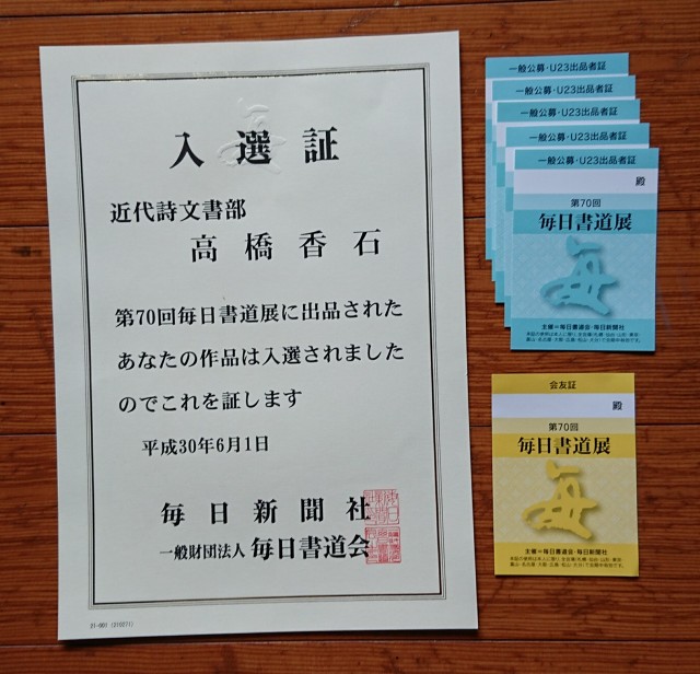 毎日書道展理事・監事・東京出品の一般公募入選・U23入選